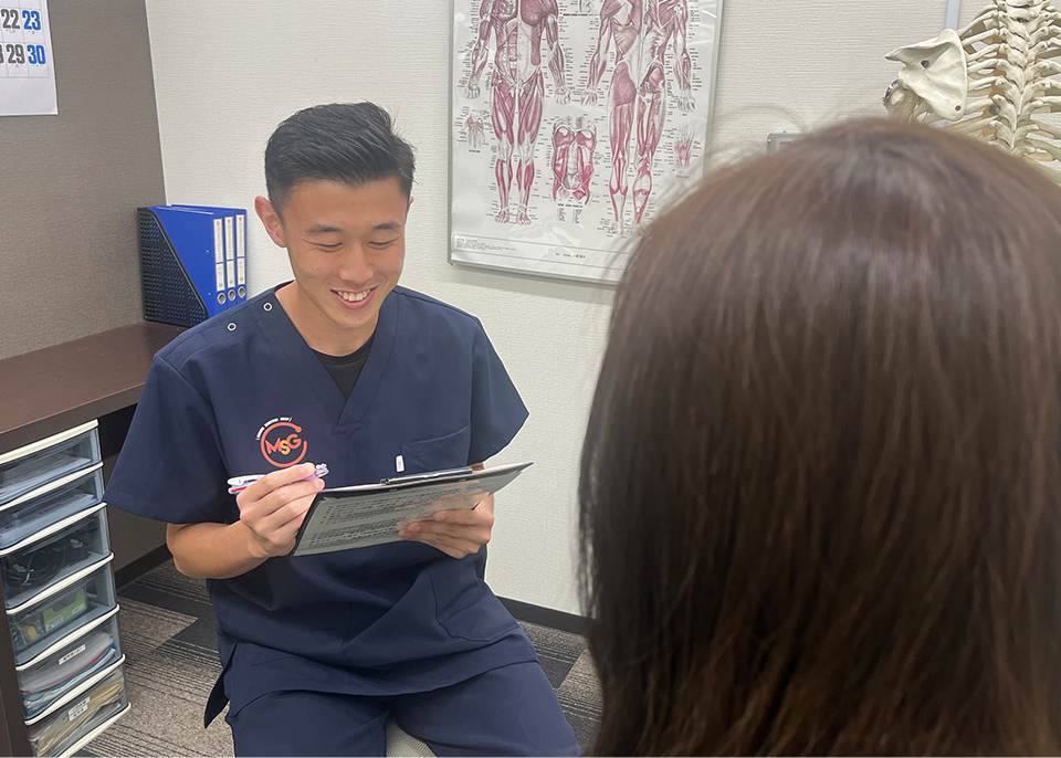 むち打ちは人それぞれに症状の出方も原因も違うので一人ひとりに合った施術を提供することを大切にしています。